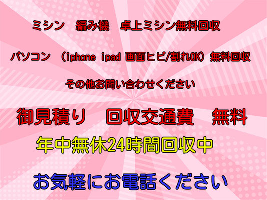 下記基本無料回収です。出張費も無料です、詳細はお問い合わせください。