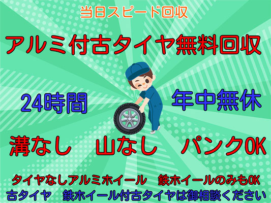 アルミ付古タイヤ・アルミホイールのみもOK(鉄ホイール付要相談)